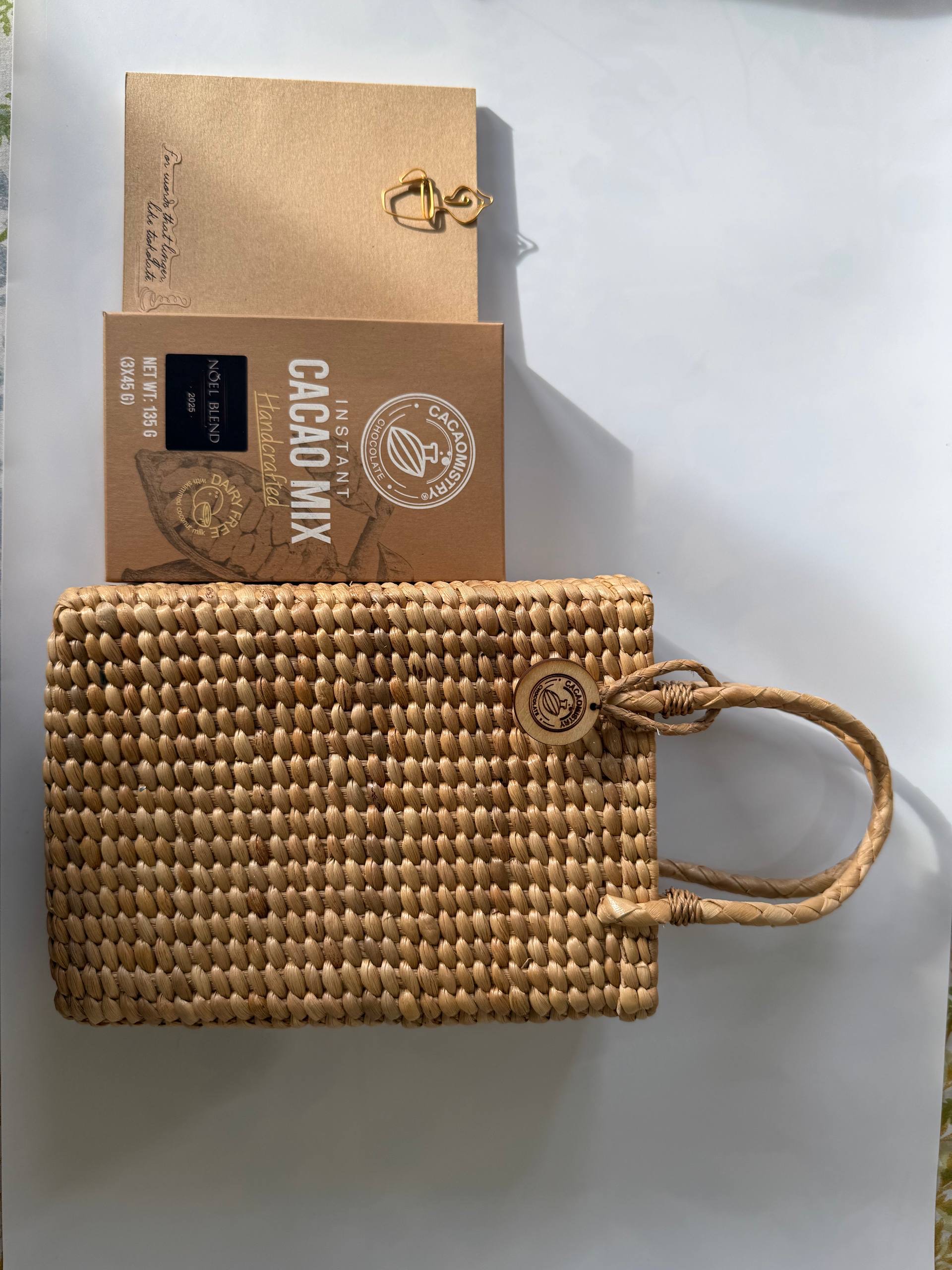Inside, you’ll find a box of Noel Blend, a kraft notebook for capturing everyday thoughts, and a handmade wire bookmark crafted by an award winning female artist from Antipolo. We tucked them all into a waterlilly bag handcrfted in Pililla, Rizal – a piece that carries both beauty and purpose, providing livelihood while caring for nature.